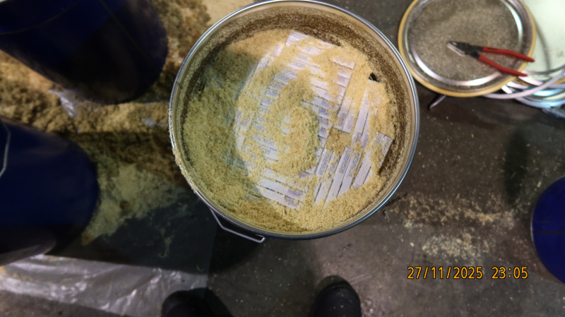 При анализе изображений таможенники заподозрили, что в металлических ведрах спрятаны сигареты. Таможенники начали тщательный досмотр и частично разгрузили груз. При вскрытии некоторых контейнеров и проверке их содержимого было обнаружено, что заявленный товар был заменен опилками, а под ними были спрятаны контрабандные сигареты.