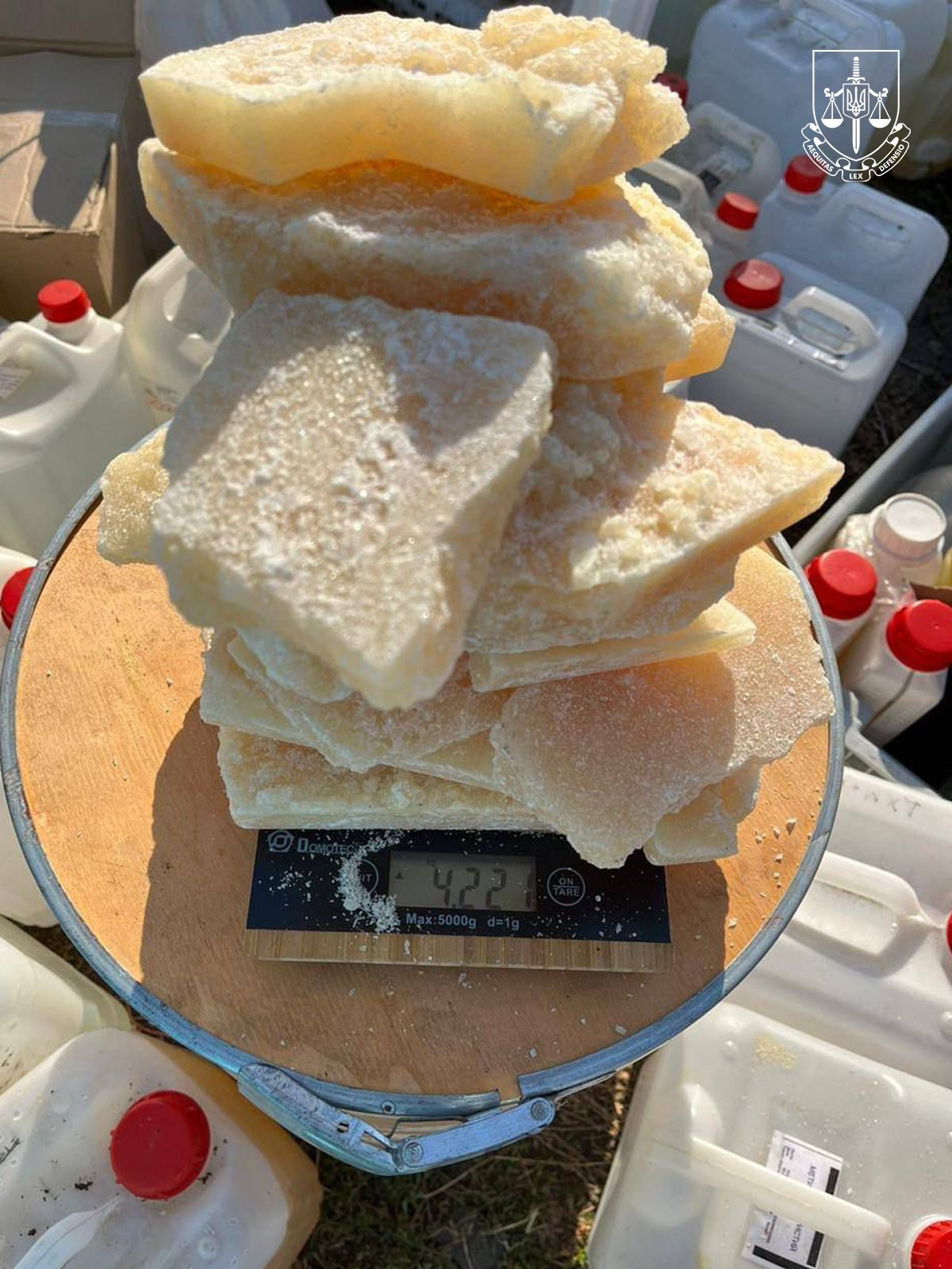 В рамках спецоперации ликвидировали лабораторию в Польше, где производили метадон в кристаллической форме. Также ликвидировано восемь лабораторий в Польше и в Украине, где производили особо опасные наркотические средства: метадон, мефедрон и Альфа-ПВП.